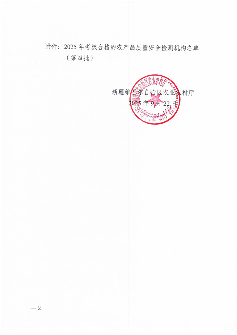 关于颁发2025年第四批农产品质量安全检测机构考核合格的公告